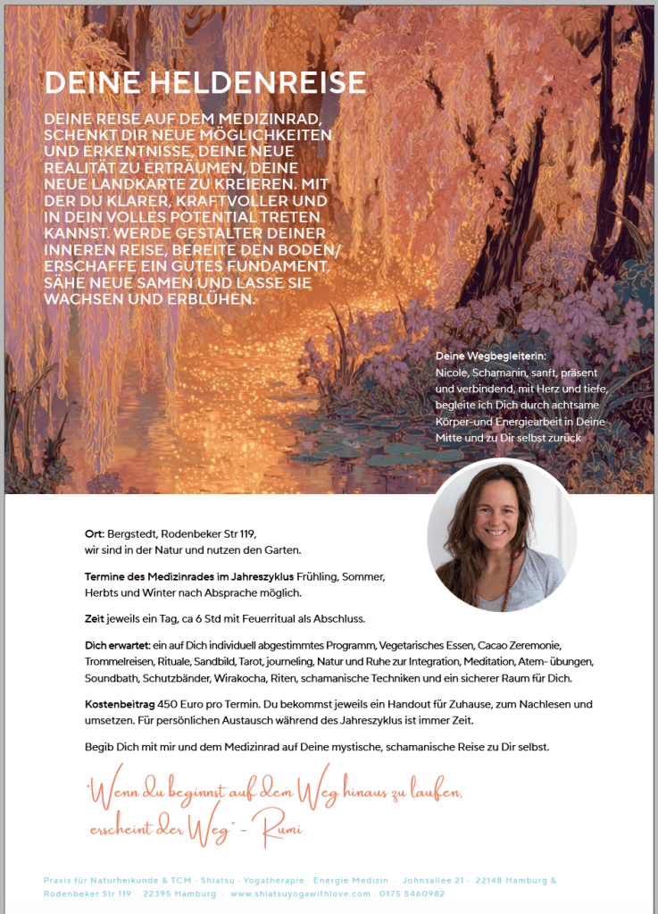 Wenn Du dabei sein möchtest, dann schreib mir bitte eine kurze eMail an info@shiatsuyogawithlove.com und Du erhältst von mir alle Infos & Details.